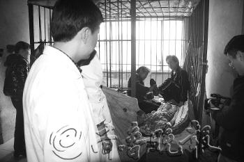 17日中午,经过三个多小时的奔波,济南神康医院的医护人员赶到李良涛家中。李良涛的母亲刘美玉早早地站在门口等候,李良涛的大姐、二姐和附近邻居都赶了过来。济南神康医院的精神科副主任医师杜丙灿下车后,来到李良涛所住的里屋。铁笼里的李良涛,盖着一层被子,蜷缩在笼子的一角,对一群人的到来没有什么反应。