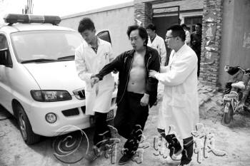 在车门口,他又坚决地停下来,任凭医护人员怎么推都不肯上车。刘美玉走过来说,“进去,坐在里面,都是好人。”李良涛才低下身子坐进车里,双腿抖个不停。