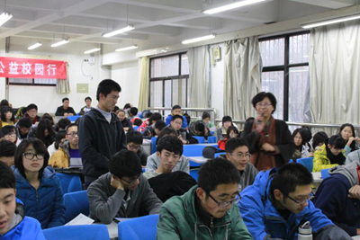 讲课期间,很多学生踊跃举手,提出自己的疑问,张老师都一一为其解疑答惑。在一个冥想自己未来是什么样子的互动环节,张老师问道在座各位是否在大脑中呈现出了自己未来的一个图片时,一个男生说道“在我的脑海中,那个画面是一个成功人士的画面,我站在投影仪前,为同事阐述我的研究成果····”,听完这位同学的分享后,张老师说道“这位同学心态非常的积极,他有了他的人生奋斗目标和方向,只要这个画面时刻出现在你的脑海里,总有一天你会做到的,这就是今天这堂课大的收获。”