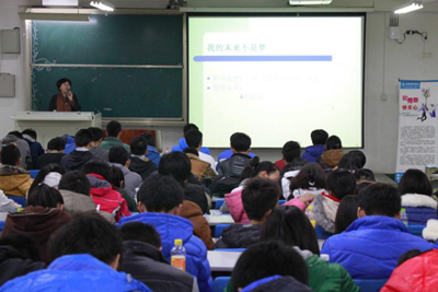 张老师通过PPT课件讲解的方式向在座的同学及老师详细阐述了大学生当下普遍存在且自己没有意识到的心理问题。比如:人际关系淡漠、社交恐惧、不健全恋爱心理等相关问题。并着重就大学生择业、就业等人生规划方面做了详细的阐述。张老师表示:“大学时代是成年人由学生身份向社会身份转变的一个重要阶段,自己适合做什么、未来能承担社会的什么角色,有心的大学生应该在大学时代就有所规划,但是现阶段很多学生还处于迷茫状态,不知道甚至不确定自己想要什么,这对未来的发展十分的不利”。为了帮助学生正确认清自己的优势、劣势,勇敢的朝着自己的梦想前进,张老师通过音乐冥想的方式为在座大学生重新定位,让他们在回忆高中时代的拼搏、正视当下的学习现状、憧憬未来的职业生涯的联想中正确定位,知道自己有什么、想要什么,从而正确的规划自己的未来,给自己一个新的方向。