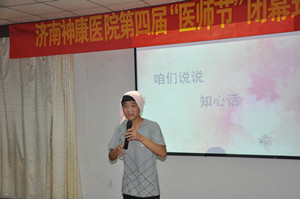 年轻的节日需要年轻的风采,节日少不了的就是欢歌笑语。一年的辛勤付出,在这个特殊的节日里可以得到放松和肯定。五病区李甜甜医师的一首《但愿人长久》拉开了节日的序幕,在这个特殊的日子里寄托了对医院的美好祝愿,也表达了对医师们的美好祝福,希望所有人都幸福长长久久、健康快乐长长久久。之后黄院长和辛主任一起带来的诗歌朗诵《我们的医院》,更是表达了对医院深深的热爱和老当益壮的风采。热闹不断、精彩不断,神康人在用自己的语言和方式表达自己对医师这个职业的热爱和神康人永不服输、积极向上的风貌。之后张院长携二病区全体医师带来的《谈起我心爱的土琵琶》、三病区郜莹带来的豫剧《穆桂英挂帅》、四病区张太有的《说说知心话》、针灸室刘运美主任来带的《青春舞曲》展示了我们老中青医师们永不服输、永不怕老的态度。四病区全体医师带来的《明天会更好》,说出来全体员工的心声:希望神康的明天会更好、越来越好。六病区王峰的《父亲》感人至深、四病区张太有的快板演奏,以其风趣的语言、诙谐的表演更是赢得了所有人的掌声。后护理部李晶主任带来的经典歌曲《又唱浏阳河》,表达出对神康医师的期盼:开拓进取,勇于创新。