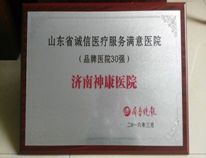 近日,济南神康医院又传出喜讯,在山东省卫计委和齐鲁晚报联合举办的“山东省诚信医疗服务满意度调查”活动中,神康医院再次脱颖而出,荣获“山东省诚信医疗服务满意医院”(品牌医院30强)称号。