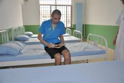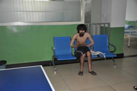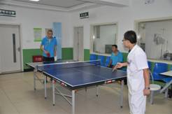 入院第三周,张兴海正在看书、与医生打乒乓球