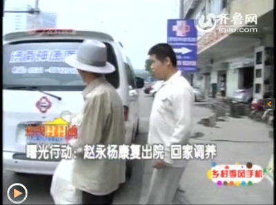 在家人的劝说下,赵永杨安静的打了针和父亲一起坐上了前往济南神康的救护车,赵永杨七岁的女儿含着眼泪,望着车子远去的背影,孩子话不多,一直摇着小手,直到救护车消失在视野里。一路上赵永杨都比较安静,经过三个小时的颠簸,曙光行动小组到达了济南神康医院,医护人员给赵永杨安排了病房。