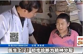 为了帮助刘洋,济南神康医院的专家马增来主任跟随记者来到新泰市将军堂村,据刘洋的父亲说,刘洋出现了自言自语、自残、重复说话等症状,在医生了解情况的时候,刘洋依然做着各种旁人无法理解的怪异动作(挤眼睛、吧哒嘴、比划手势),而且根本没办法交流。根据刘洋的一系列表现,医生做出了初步判断:刘洋智力和精神都不好,属于精神发育不全,而且出现了精神分裂症的症状(自言自语,不能正常交流),必须接受治疗。